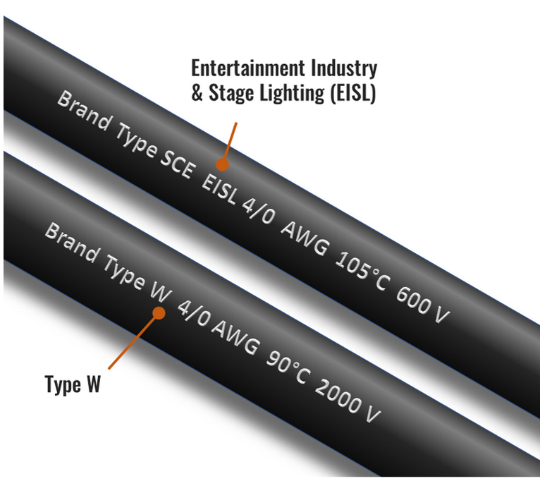 UL Listed Type SC UL 1680 (Stage and Lighting Cable) UL 44 and 1581, & 2556 NFPA 70/NEC Articles 400, 520, 525, and 530 FT-5 (4/0 and larger only) ASTM B3, B49, B172, and B263